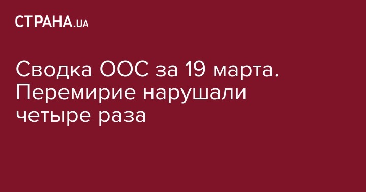 Во вторник, 19 марта, незаконные вооруженные формирования с начала суток осуществили четыре обстрела позиций ООС, потерь среди украинских подразделений нет. Об этом сообщает пресс-центр штаба ООС в Facebook.