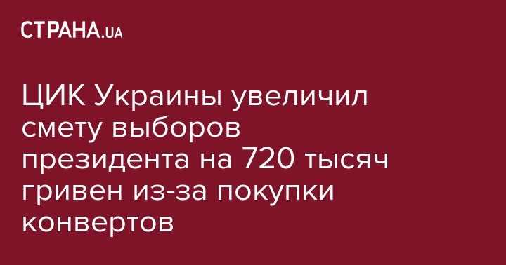 Во вторник, 19 марта, во время заседания Центральной избирательной комиссии была увеличена на 720 тысяч гривен смета расходов комиссии на подготовку и проведение выборов президента, которые пройдут 31 марта, для нужд заграничного избирательного округа, передает Укринформ