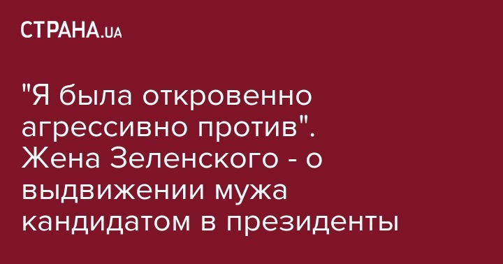"Я была откровенно агрессивно против". Жена Зеленского - о выдвижении мужа кандидатом в президенты