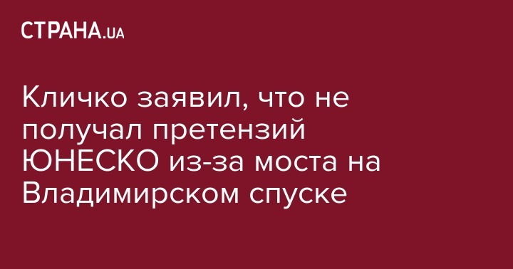 "На днях в некоторых СМИ появилась информация, что ЮНЕСКО выступает против строительства пешеходно-велосипедного моста, который должен стать туристической жемчужиной Киева. Я хочу вас заверить: строительные работы по возведению этого моста через Владимирский спуск полностью соответствуют действующему законодательству. Сейчас работы продолжаются и никаких требований от ЮНЕСКО о прекращении работ городская администрация не получала", -  сообщил мэр столицы Виталий Кличко.