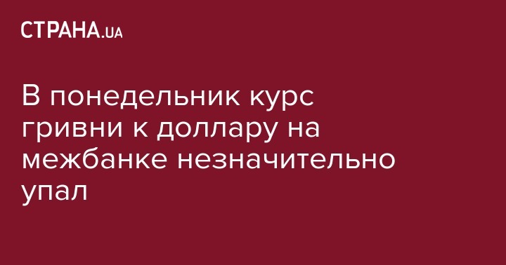 В понедельник, 25 марта, курс украинской валюты на межбанковском валютном рынке снизился до 26,9575 грн/$1 с 26,895 грн/$1 в предыдущий рабочий день. Об этом сообщили дилеры коммерческих банков, передает Интерфакс-Украина