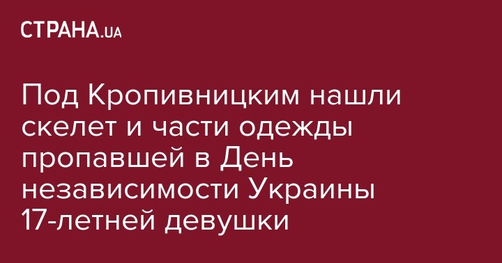 Под Кропивницким нашли скелет и части одежды пропавшей в День независимости Украины 17-летней девушки