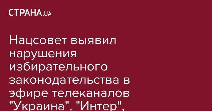 Национальный совет Украины по вопросам телевидения и радиовещания выявил признаки нарушения избирательного законодательства в эфире ряда телеканалов, в том числе "Украина", "Интер", "1+1" и ICTV. Об этом сообщает сайт Нацсовета.