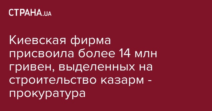 Киевская фирма присвоила более 14 млн гривен, выделенных на строительство казарм - прокуратура