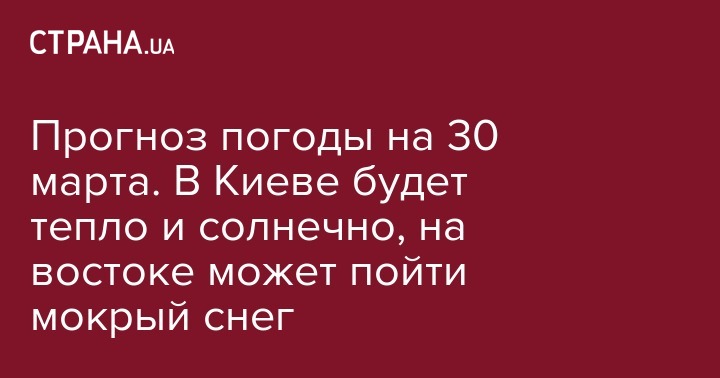 Прогноз погоды на 30 марта. В Киеве будет тепло и солнечно, на востоке может пойти мокрый снег