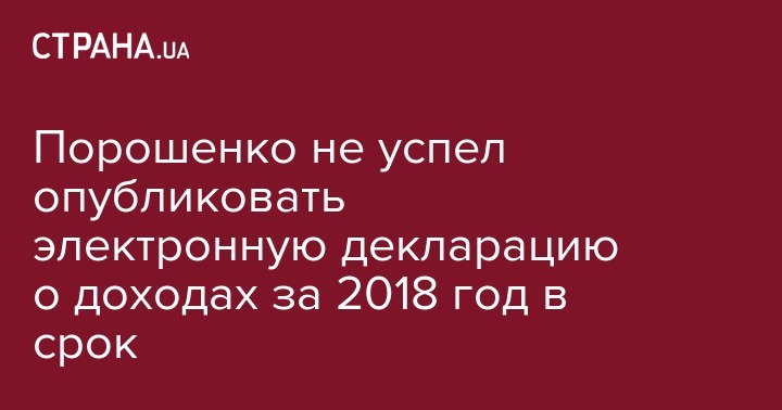 При этом в 2019 году последний срок декларирования выпал на день выборов Президента. По состоянию на 00:50 1 апреля соответствующая декларация Порошенко в реестре отсутствует.