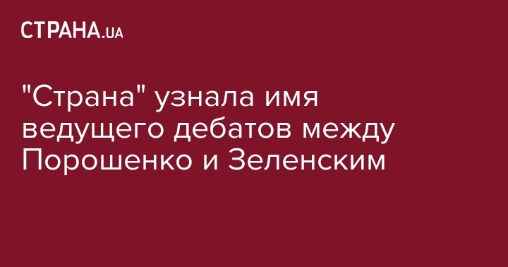 "Страна" узнала имя ведущего дебатов между Порошенко и Зеленским