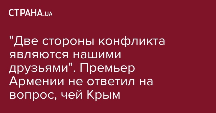 Во время заседания Парламентской ассамблеи Совета Европы премьер-министр Армении Никол Пашинян на вопрос, чей, по его мнению, Крым, заявил, что и Украина, и Россия являются друзьями Армении. Об этом пишет "Громадське".