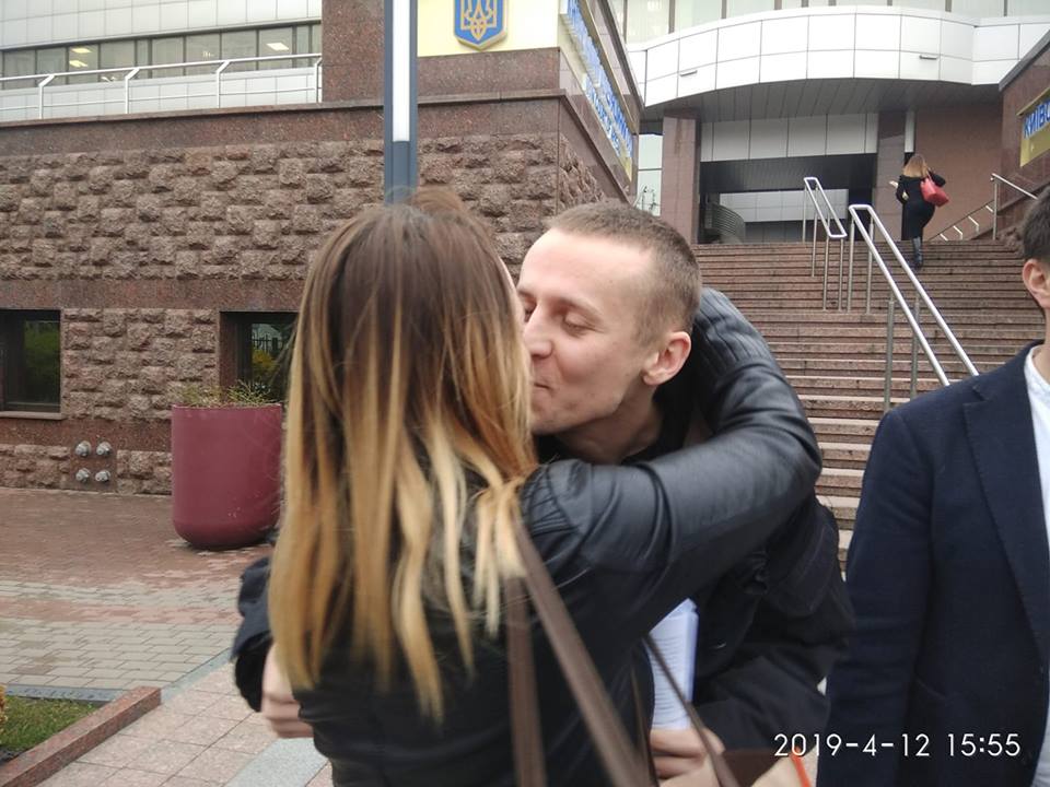 Евгений Моренец, он же - "Белая балаклава" сразу после выхода из зала суда и по приезду домой, источник фото: facebook.com/Олександра Моренець