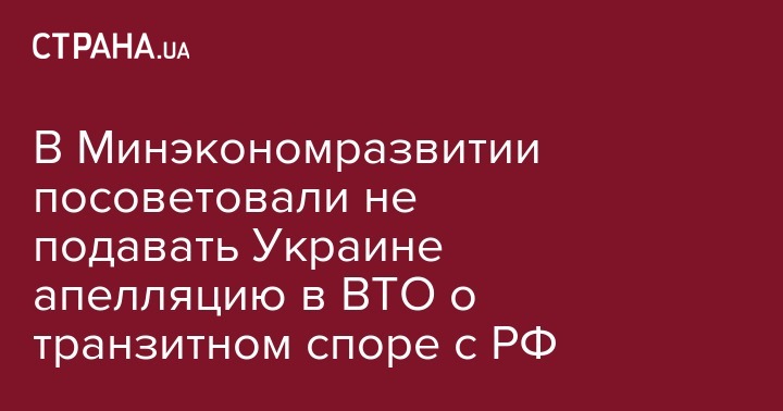 В Минэкономразвитии посоветовали не подавать Украине апелляцию в ВТО о транзитном споре с РФ