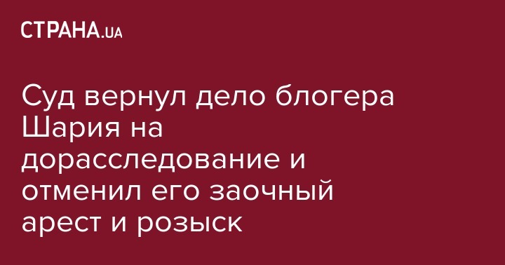 Так, было принято решение вернуть дело на дорасследование в прокуратуру Киева, а розыск и заочный арест Шария - отменить.