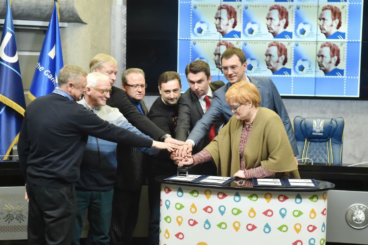 Церемония торжественного спецгашения марки состоялась в Доме Футбола ФФУ с участием дочери легендарного тренера Светланы Лобановской, знаменитых футболистов минувших лет, игравших в командах легенды отечественного футбола, функционеров Национальной футбольной ассоциации и "Укрпочты".
