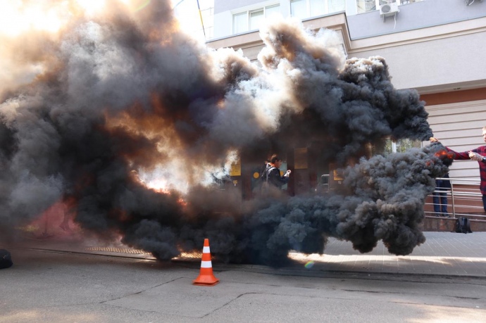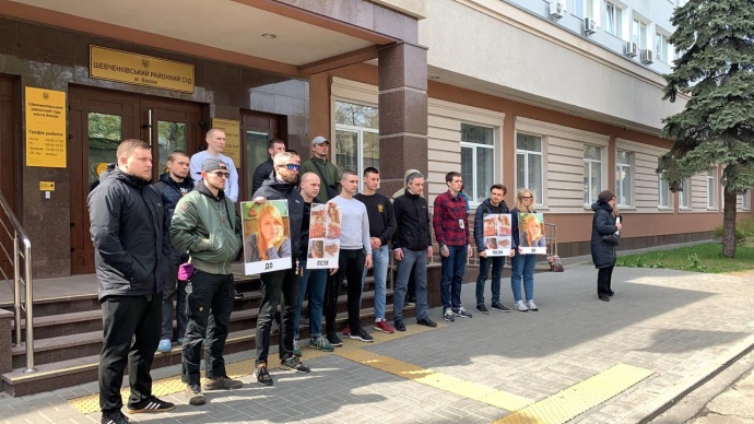 Под зданием суда активисты сообщества "Кто заказал Гандзюк?" каждый раз устраивают акции протеста, опасаясь, что Павловского могут выпустить из-под стражи.