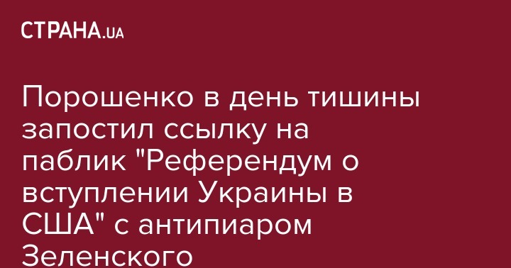 Порошенко в день тишины запостил ссылку на паблик "Референдум о вступлении Украины в США" с антипиаром Зеленского