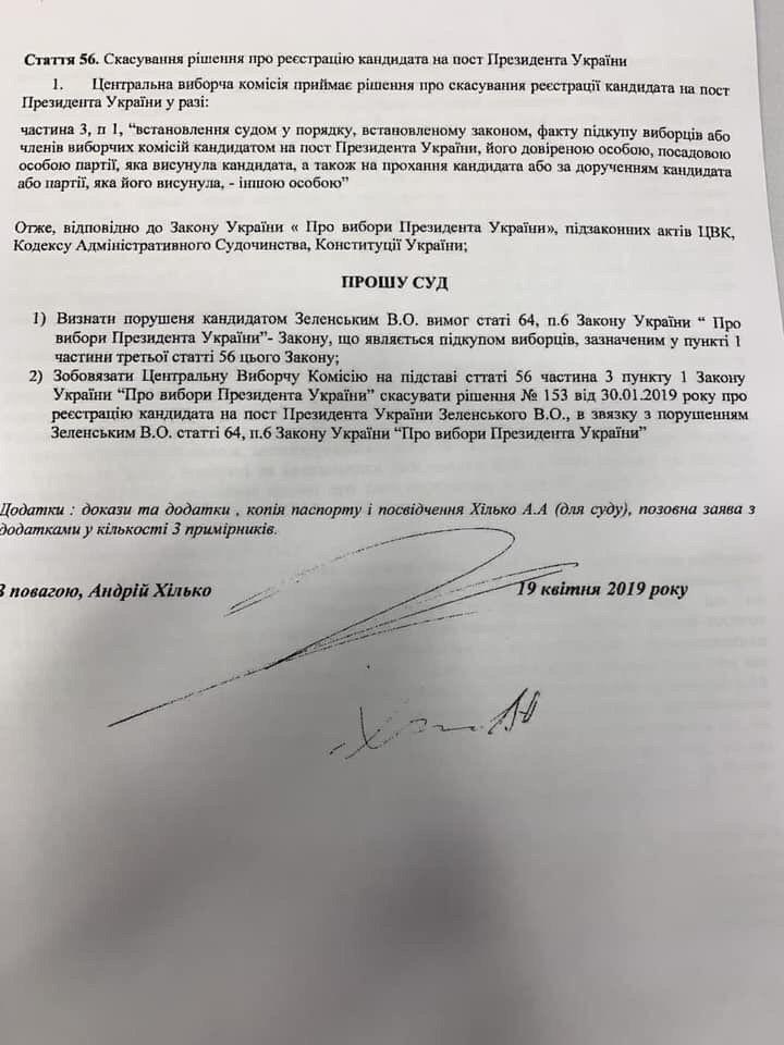 В субботу, 20 апреля Шестой апелляционный суд Киева должен быть начать в 21.00 рассмотрение дела о возможном аннулировании регистрации Владимира Зеленского кандидатом в президенты по иску адвоката Андрея Хилько.