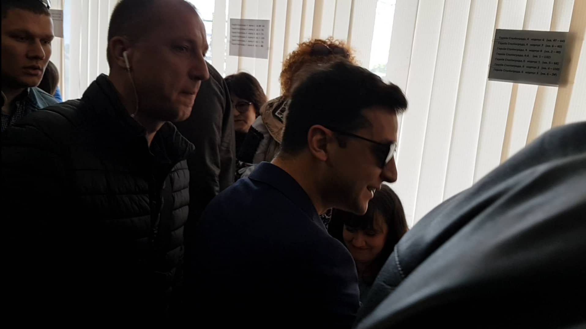 К 11 утра на свой участок прибыл кандидат в президенты Владимир Зеленский. Он приехал вместе с женой Еленой и в окружении 12 телохранителей, которые оттесняли от него представителей СМИ. Шоумен как и во время первого тура, проголосовал на участке в Оболонском районе столицы.