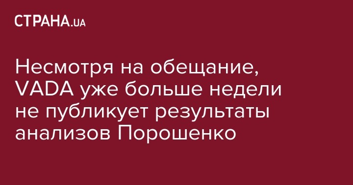 В среду, 10 апреля, тогда еще кандидат в президенты Петр Порошенко сдавал повторные анализы на НСК "Олимпийский" для Voluntary Anti-Doping Association (VADA). Их результаты ожидались уже через 5-10 дней, однако к 23 апреля они до сих пор публично неизвестны.
