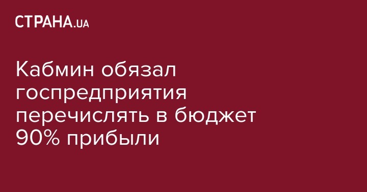 Правительство поднимет с 75% до 90% долю прибыли, которую должны перечислять в бюджет госпредприятия. Такое решение Кабмин принял на сегодняшнем заседании, передает "Корреспондент".