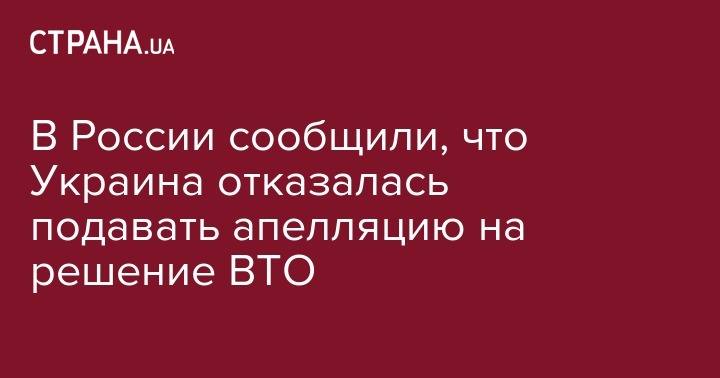 В России сообщили, что Украина отказалась подавать апелляцию на решение ВТО