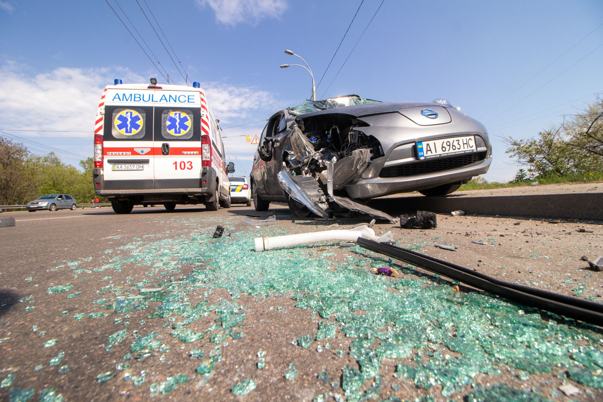 Также появились фото и видео с места ДТП с опрокидыванием авто на проспекте Победы в Киеве.