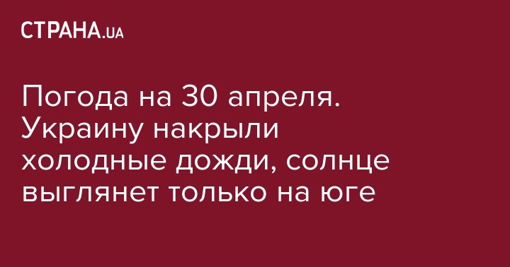 Во вторник, 30 апреля, всю Украину накроют дожди, солнечно будет только в Крыму, Николаеве и Херсоне. Об этом свидетельствует информация, размещенная на сайте Укргидрометцентра