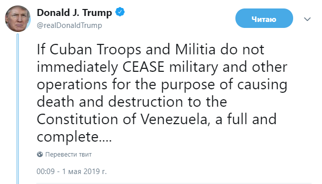 — Juan Guaidó (@jguaido) 1 мая 2019 г.