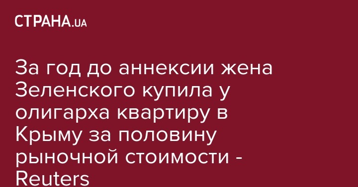 Жена новоизбранного президента Украины Владимира Зеленского Елена в 2013 году купила роскошную квартиру в Крыму менее чем за половину ее рыночной стоимости. Продавцом выступил экс-нардеп и олигарх Александр Буряк. Об этом пишет Reuters.