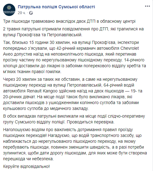 Скриншот: Facebook/Патрульна поліція Сумської області