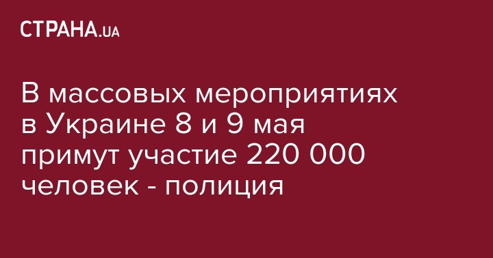 В массовых мероприятиях в Украине 8 и 9 мая примут участие 220 000 человек - полиция