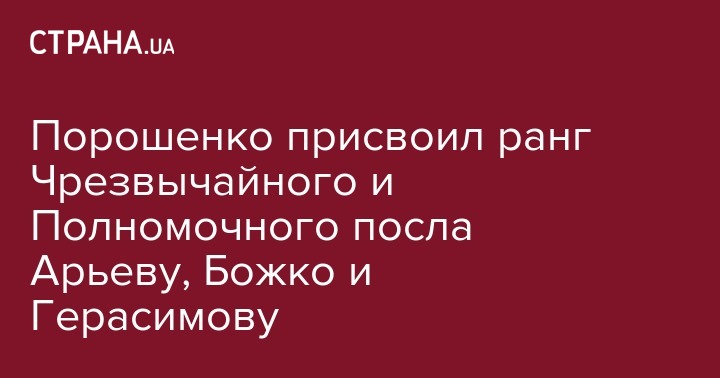 Порошенко присвоил ранг Чрезвычайного и Полномочного посла Арьеву, Божко и Герасимову
