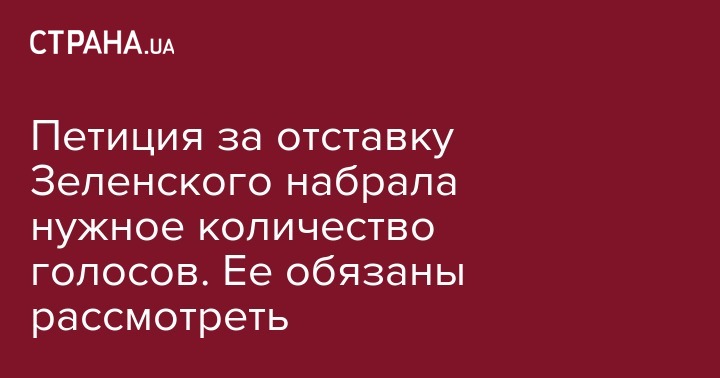 Электронная петиция "За отставку президента Владимира Зеленского", размещенная на сайте главы государства, за неполные двое суток набрала 25 тысяч голосов, необходимых для ее рассмотрения главой государства.