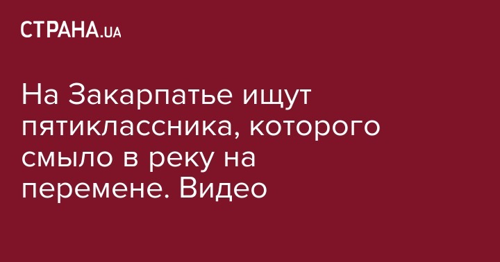 На Закарпатье ищут пятиклассника, которого унесла река. Как говорится в сюжете ТСН, мальчик вышел на перемене из школы посмотреть на реку, уровень воды в которой резко вырос, и упал в водоем.