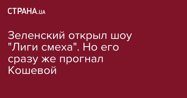 Зеленский вышел к зрителям, когда на сцене исполняли песню. Он поздоровался с публикой и сказал "Добрый вечер. Больше слов у меня нет". На сцене сразу появился артист "Квартал 95" Евгений Кошевой, который заменил Зеленского-ведущего в "Лиге смеха" и отобрал у президента микрофон (о том, что он заменит нынешнего президента, сообщалось и ранее). Зеленский притворно возмутился, но пошел смотреть концерт в зал.