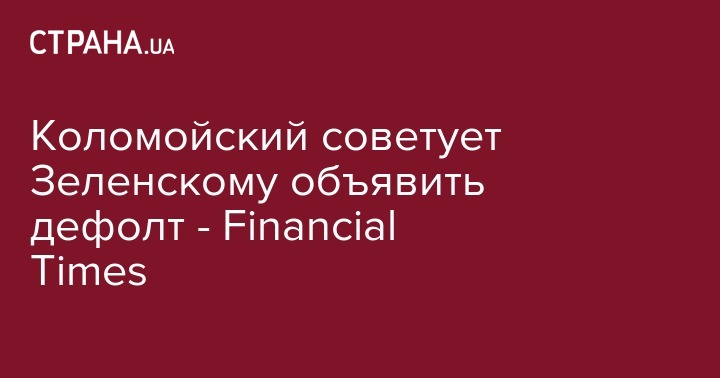 Авторитетное издание Financial Times обнародовало материл, в котором пишет, что олигарх Игорь Коломойский рекомендует украинскому президенту Владимиру Зеленскому не платить МВФ, объявив дефолт. Статья озаглавлена "Украинский олигарх призывает Владимира Зеленского объявить дефолт по долгам".