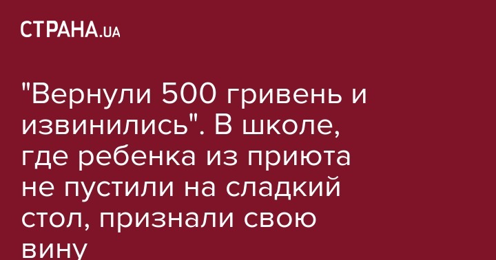 "Вернули 500 гривень и извинились". В школе, где ребенка из приюта не пустили на сладкий стол, признали свою вину