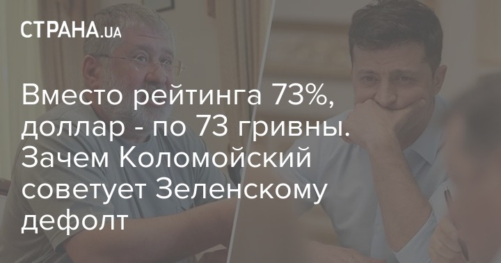 И на случай возможного дефолта, как пишет Сергей Фурса, в соцсетях, "есть одна правда в интервью Коломойского. Где он говорит Зеленскому, что если тот будет слушаться Запада, то не сможет сохранить свой рейтинг. Это правда. Если делать реформы, не видать ему рейтинга в 73%. Но если он решит не слушать Запада, то мы все легко увидим курс гривны 73 и выше".