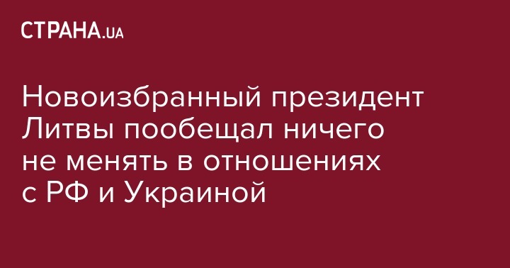 "Избранный президентом Гинатас Науседа заявил, что по отношению к России будет продолжать курс страны, определенный его предшественницей Далей Грибаускайте, так как любое изменение будет означать, что "Литва предаст своих партнеров в Украине", – заявили в представительстве Литвы в Европейском союзе.