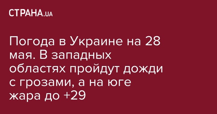 Погода в Украине на 28 мая. В западных областях пройдут дожди с грозами, а на юге жара до +29