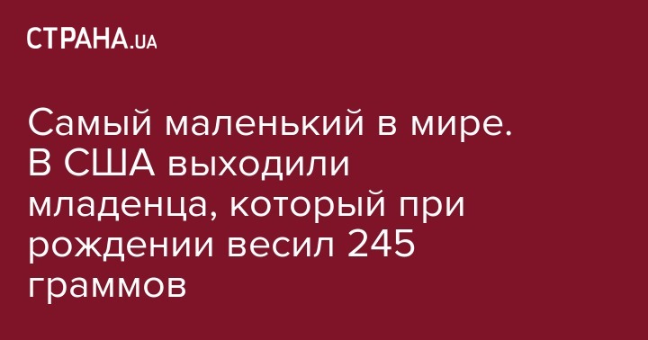 В США медики выходили самого маленького новорожденного в мире, вес которого при появлении на свет составлял всего 245 граммов. Об этом пишет The Sun.