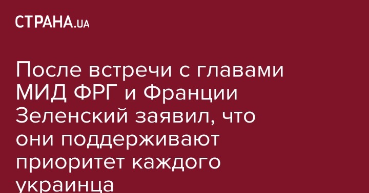 После встречи с министром иностранных дел Франции Жан-Ив Ле Дрианом и министром иностранных дел Германии Хайко Маасом в четверг, 30 мая, в Киеве президент Украины Владимир Зеленский заявил, что власти Германии и Франции "поддерживают приоритет каждого украинца - прекращение огня на Донбассе".