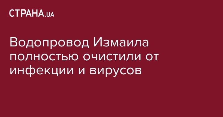 Водопровод в Измаиле после гиперхлорирования полностью очищен от инфекции. Об этом сообщил 29 июня на брифинге в Киеве врио главного санитарного врача Украины Святослав Протас, передает Интерфакс-Украина.