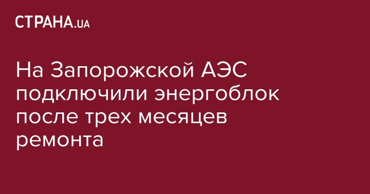 На Запорожской АЭС подключили энергоблок после трех месяцев ремонта