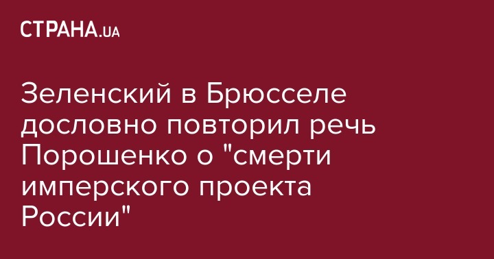 Зеленский в Брюсселе дословно повторил речь Порошенко о "смерти имперского проекта России"