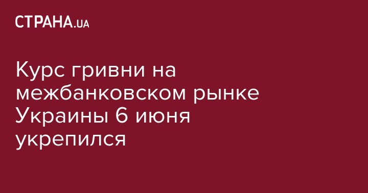 Курс гривни на межбанковском рынке Украины 6 июня укрепился