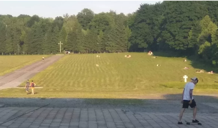 Во Львове люди пришли на кладбище советских солдат и начали там загорать. Фото