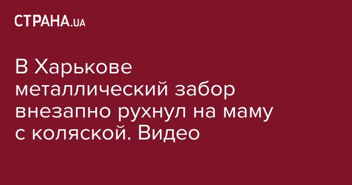 В Харькове металлический забор внезапно рухнул на маму с коляской. Видео