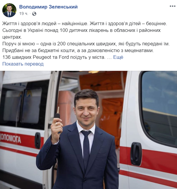 В Сети появилось фото президента Владимира Зеленского, который держит ключи от "скорых". Их недавно передали больницам в областных центрах.