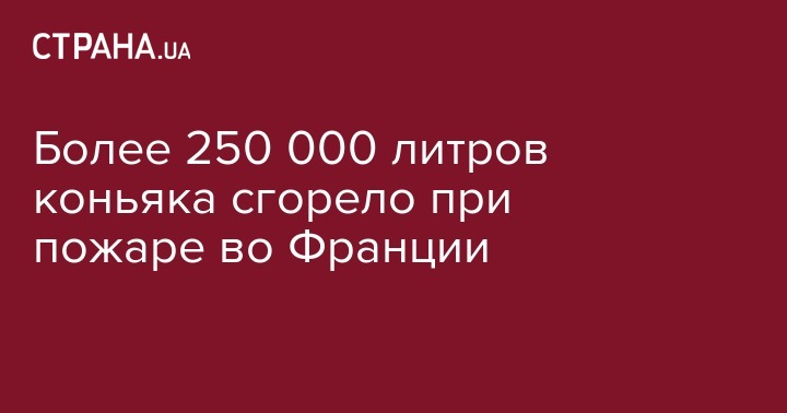 Во французском департаменте Шаранта, который является частью региона Коньяк, произошел крупный пожар. Как сообщает "Европейская правда" со ссылкой на французские СМИ, огнем уничтожено 250 тысяч литров коньяка.