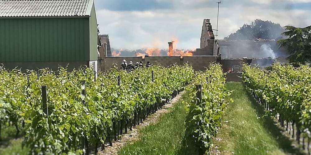 "Огонь охватил фотоэлектрические панели и распространился на винный погреб площадью 200 кв. м, смежный дом и фермерский сарай общей площадью около 1000 кв. м. Нам удалось защитить соседний ликеро-водочный завод, внутри которого было около 350 гектолитров, и дюжину сельскохозяйственных машин", - сказал капитан Дэвид Барден с ведомственной пожарно-спасательной службы Шаранты.