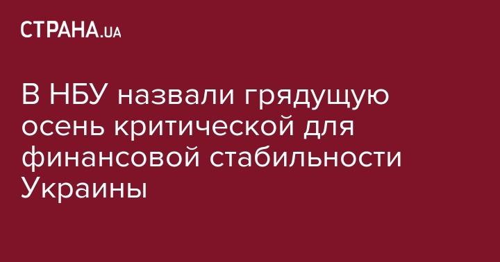 В НБУ назвали грядущую осень критической для финансовой стабильности Украины